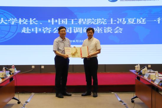 在中国国际工程咨询公司,公司党委书记、董事长、总经理苟护生,党委委员、副总经理沈浩等与冯夏庭一行就深化校企合作开展深入交流。苟护生首先代表中咨公司全体职工,也作为东北大学校友对冯夏庭一行到访表示热烈欢迎,对母校建校以来取得的巨大成就和建校100周年表示祝贺。苟护生表示,作为国家高端智库和从事综合性工程咨询的中央企业,经过40余年的发展,中咨公司已经从业务单一的咨询评估机构发展壮大成为具有决策影响力和社会影响力的智库型咨询龙头,形成了“政府委托、市场运作、智库导向”的业务发展模式,业务类型涵盖政策研究、规划咨询、项目评估、工程管理、后评价和管理咨询等六大领域。东北大学战略目标与中咨公司建设“国家高端智库和世界一流咨询机构”的战略目标不谋而合,双方合作前景广阔,期待加强智库交流与重大课题合作、联合卓越工程师培养工作以及为国家战略落地见效提供专家资源和人才支撑,培养熟知国情和国际关系,具有战略意识、前瞻意识和创新精神的复合型人才,培养出既有理论水平又有实践经验的高端人才。