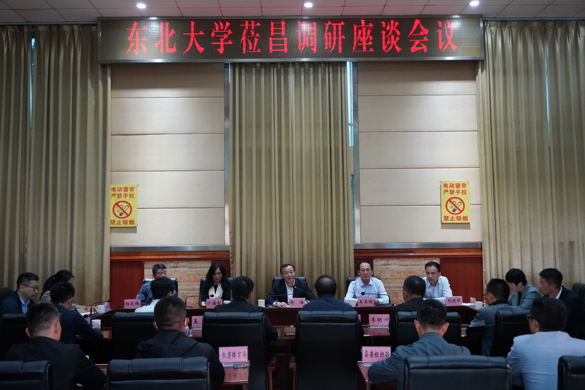 30日下午,学校与昌宁县进行调研座谈,昌宁县委书记杨斌斌,相关部门负责人参加座谈会。郭海指出,昌宁政治生态良好、资源丰富、民风淳朴,东北大学定点帮扶昌宁十年来,聚焦昌宁基础设施、产业发展、农村人居环境改善,充分调动各类资源,从资金投入、产业扶持、消费帮扶、人才支持等方面,已经与昌宁一道在定点帮扶和协作发展上取得了较好成效,建立了良好合作关系。东北大学将认真贯彻落实习近平总书记给东北大学全体师生的重要回信精神和中央有关工作要求,在巩固脱贫攻坚成果推进乡村振兴工作中,继续弘扬东北大学光荣传统,组织协调各方面资源,进一步深化与昌宁的合作,调整改进帮扶措施,发挥东北大学在教育、科技、人才、文化等方面的优势,让昌宁成为东北大学的人才培养基地和科研成果转化基地,尽最大努力做好定点帮扶工作,推动昌宁经济社会高质量发展。