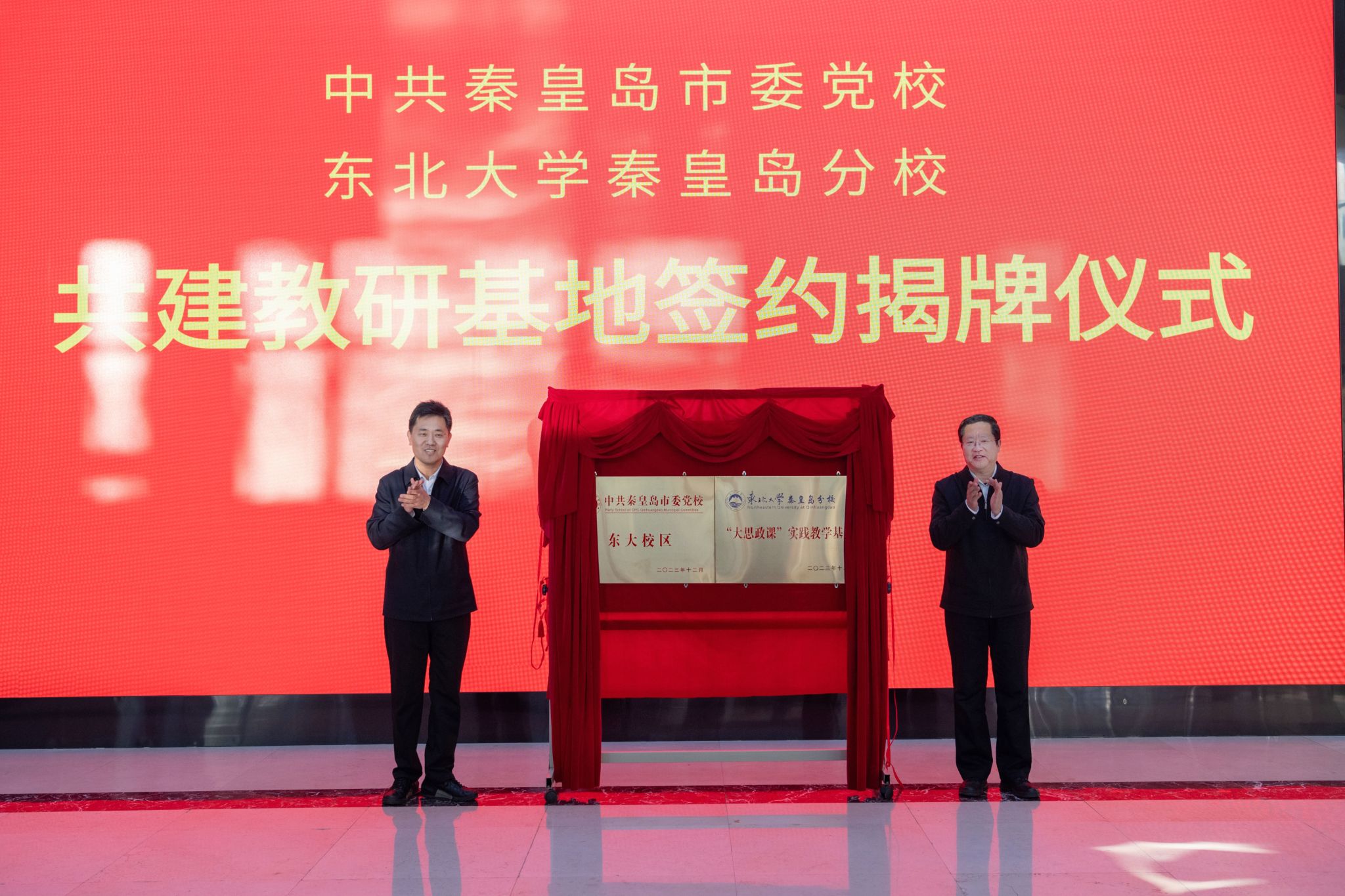 12月1日,东北大学秦皇岛分校与中共秦皇岛市委党校共建教研基地签约揭牌仪式在秦皇岛市委党校举行。东北大学党委副书记、秦皇岛分校党委书记孙正林,秦皇岛市委常委、组织部部长、统战部部长、党校校长张振锋,秦皇岛市委党校常务副校长冯宝珍等出席仪式。