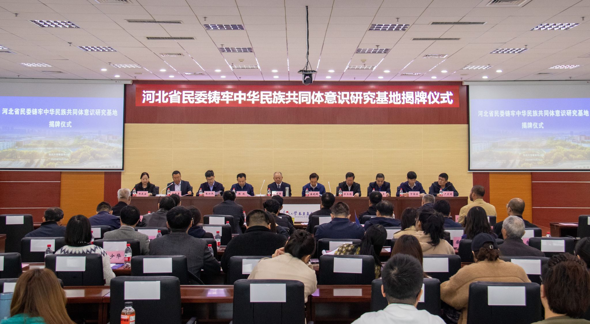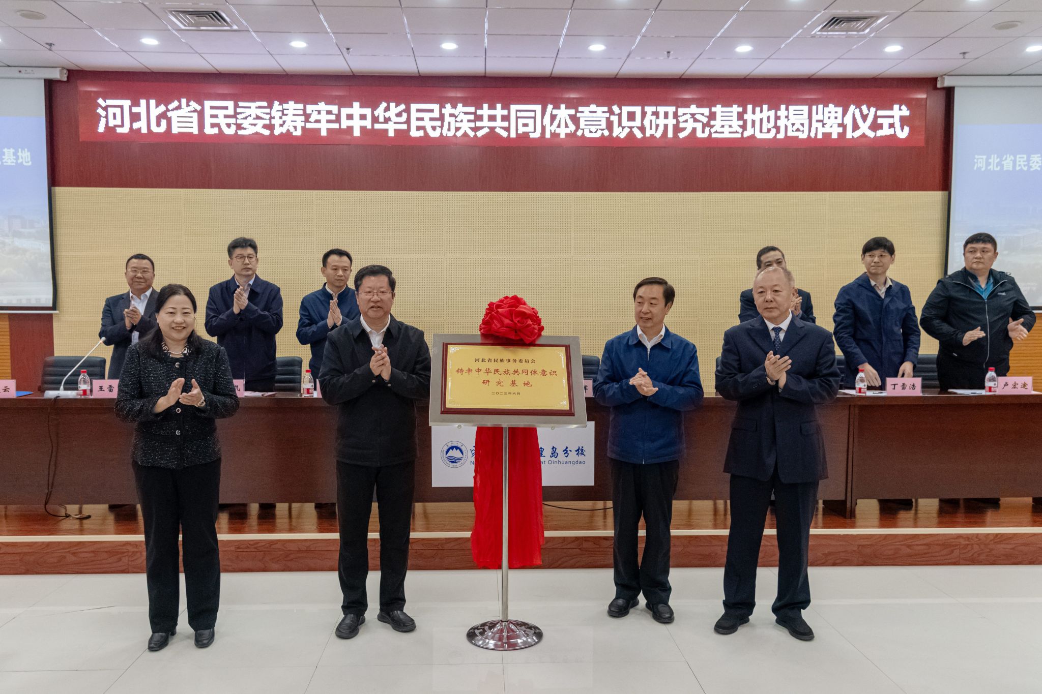 10月23日,东北大学秦皇岛分校“河北省民委铸牢中华民族共同体意识研究基地”(简称研究基地)揭牌仪式在人文楼728会议室举行。河北省民委党组副书记、副主任崔晓辉,秦皇岛市政府副市长、公安局局长郑建军,东北大学党委副书记、秦皇岛分校党委书记孙正林,研究基地主任郝庆云等出席并为基地揭牌。