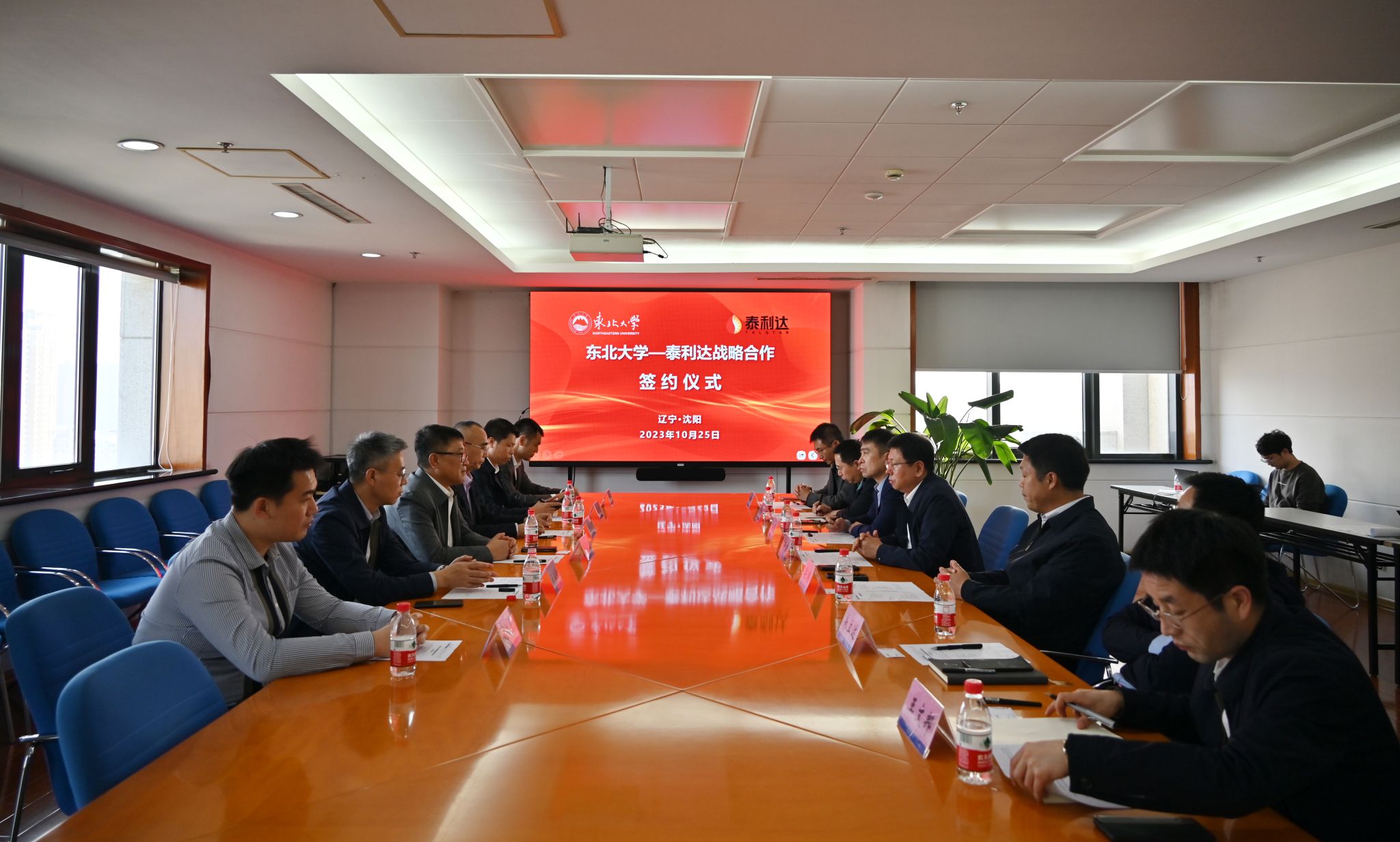 10月25日下午,东北大学—泰利达战略合作签约仪式在东北大学主楼1401室举行。东北大学副校长孙雷,辽宁泰利达集团董事长赵长宏、盘锦市科技局副局长孙立新、辽宁泰利达信息技术有限公司董事长金德明,学校教务处、科学技术研究院、对外联络与合作处、学生指导服务中心、信息科学与工程学院、软件学院等相关部门负责人参加签约仪式。