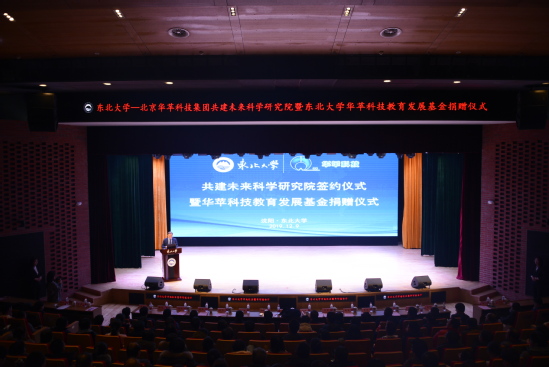 12月9日,东北大学—华苹集团共建未来科学研究院暨东北大学华苹科技教育发展基金捐赠仪式在浑南校区图书馆报告厅举行。北京华苹科技集团有限公司董事长陈华一行5人,东北大学校长赵继、副校长孙雷,科学技术研究院、学生工作处、对外联络与合作处、浑南校区管理委员会、创新创业学院、计算机科学与工程学院、软件学院、医学与生物信息工程学院、生命科学与健康学院、机器人科学与工程学院相关负责人及师生代表近500人出席仪式。