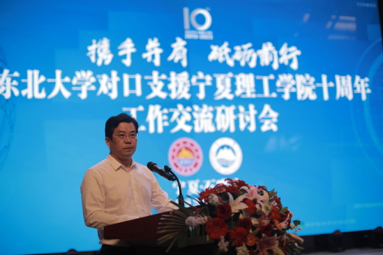 会上,武世兴代表高教司充分肯定了东北大学对口支援宁夏理工学院十周年来取得的成绩。武世兴指出,在东北大学的全面帮扶下,宁夏理工学院的办学层次水平和社会影响力空前提升,各项事业取得了跨越式发展,为宁夏经济社会发展作出了突出贡献。武世兴强调,要深刻认识对口支援工作的重大政治意义,全面把握对口支援西部高校工作的突出成就,扎实推进对口支援工作高质量发展。希望东北大学和宁夏理工学院一道,密切合作,认真贯彻落实习近平总书记在宁夏考察时“努力建设黄河流域生态保护和高质量发展先行区”的重要指示精神,高质量开展对口支援工作,在力度和机制上开新局、在合作内容上开新地,为中西部高等教育振兴和宁夏经济社会发展作出新的更大的贡献。