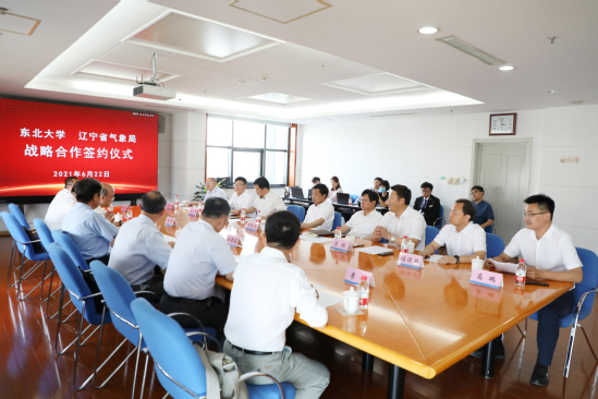 6月22日下午,东北大学与辽宁省气象局战略合作框架协议签约仪式在主楼1401室举行。辽宁省气象局局长王邦中、副局长刘勇,我校校长冯夏庭、副校长孙雷等出席签约仪式。科学技术研究院、国防科技发展研究院、对外联络与合作处、资源与土木工程学院、信息科学与工程学院、计算机科学与工程学院等相关单位负责人参加仪式。