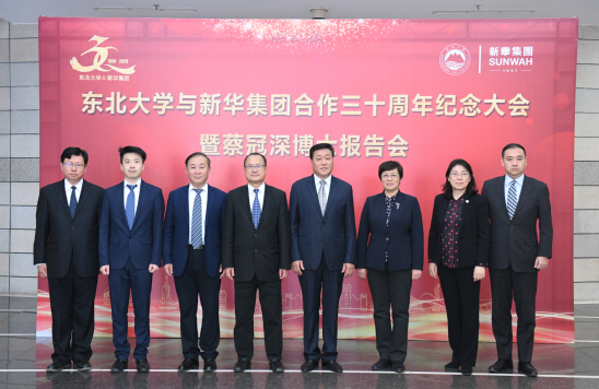 11月13日,东北大学与新华集团合作三十周年纪念大会暨蔡冠深博士报告会在蔡冠深报告厅举行。全国政协常委、新华集团主席蔡冠深,辽宁省政协副主席高科,辽宁省委统战部副部长王东秀,辽宁省政协副秘书长赵永清,辽宁省政府外事办公室副主任刘天雨,新华集团执行董事蔡隽思,新华集团中国内地行政总监余正生,新华集团东北区总经理崔彤,东北大学党委书记熊晓梅,校长赵继,副校长孙雷出席会议。