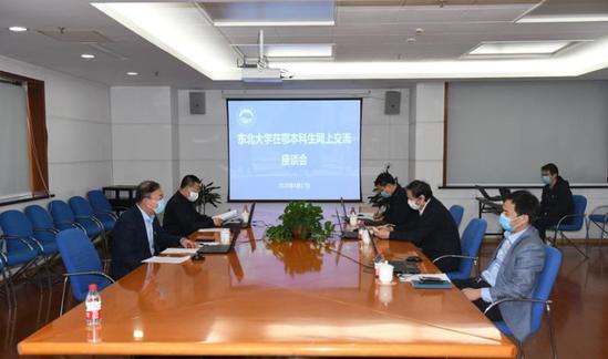 4月17日,东北大学在鄂本科生网上交流座谈会在主楼1401室举行。校长赵继、校党委副书记张国臣通过网络平台视频连线的方式与在鄂学生代表座谈交流。校长办公室、教务处、学生工作处的负责同志出席座谈会。