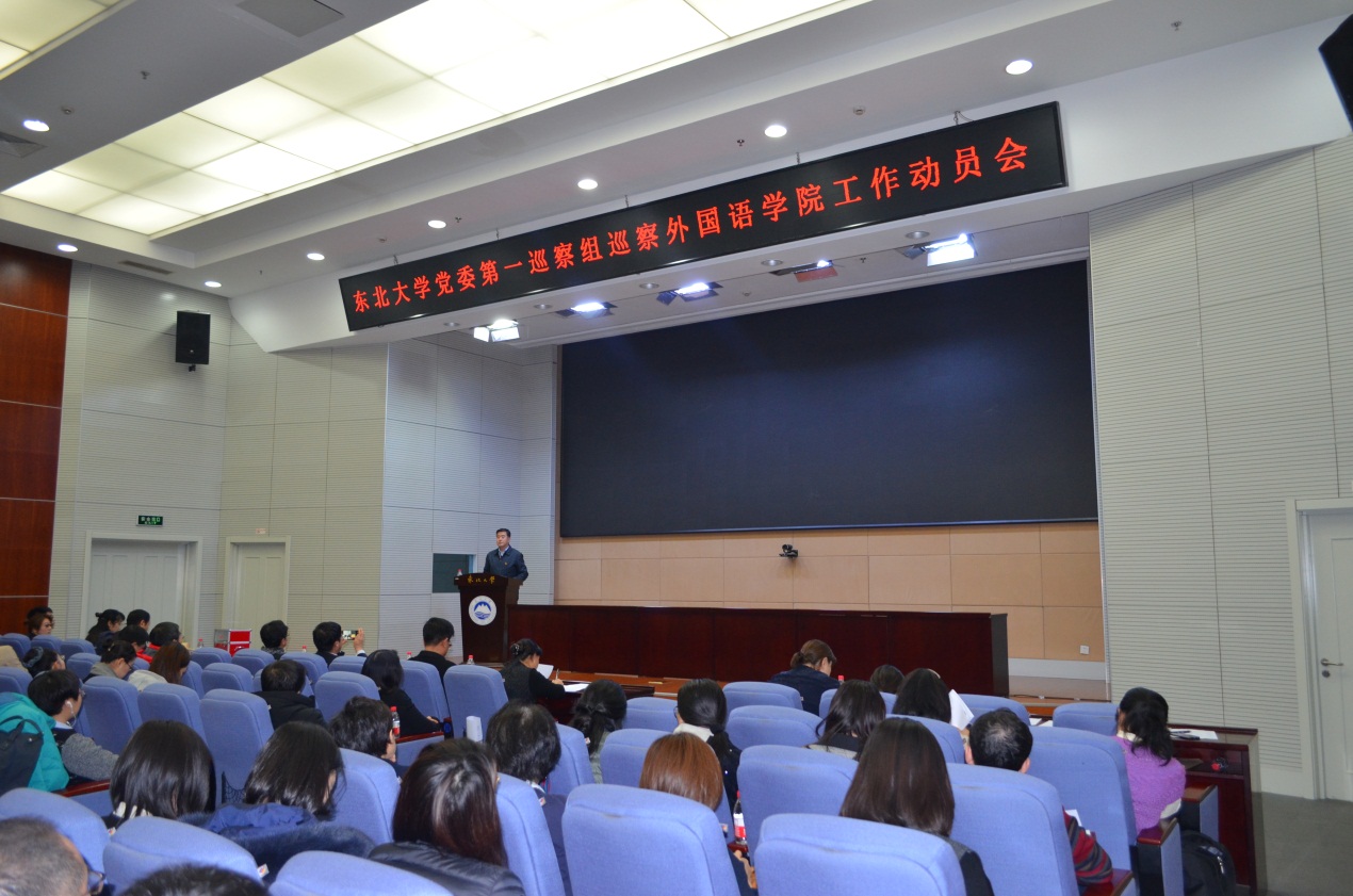 12月11日,东北大学党委第一巡察组巡察外国语学院工作动员会在主楼822室召开,校党委副书记、纪委书记、党委巡察工作领导小组副组长杨明,巡察办公室相关负责人,党委第一巡察组全体成员出席会议。外国语学院领导班子成员、全体教师、学生代表140余人参加了会议。