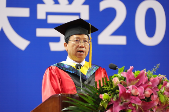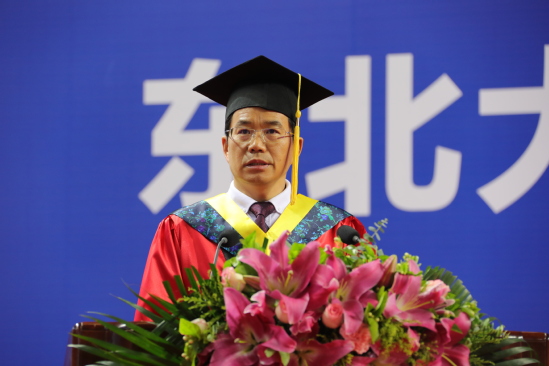 冯夏庭以“无奋斗,不青春”为题致辞。冯夏庭希望同学们有“咬定青山不放松”的定力,坚定信念方向,赓续东北大学“自强不息,知行合一”的校训精神,胸怀家国、坚定信念,在努力实现中华民族伟大复兴的生动实践中,在构建人类命运共同体的时代使命中,放飞青春梦想,成就奋斗所愿;希望同学们有“吾将上下而求索”的毅力,永葆奋斗姿态。同优秀的学长们一样,以逢山开路、遇水架桥的奋斗姿态,用汗水和执着书写新的丰碑,为国家发展和学校荣光注入磅礴的青春力量。希望同学们有“长风破浪会有时”的魄力,主动担当作为。在通往梦想的路上,抛开功利的侵扰,保持奋斗的昂扬,胸怀天下、脚踏实地,在传承和创造中培养敢于担当的勇气,善于担当的能力,以德立世,以信为先,坚定不移地朝着心中的理想扬帆远航,创造出辉煌而卓越的人生!