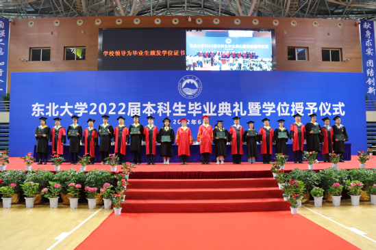 唐立新宣读东北大学2022届全日制本科生毕业及学位授予情况。根据《东北大学全日制本科生学籍管理规定》的相关要求,学校开展了2022届本科毕业生毕业资格审查,对修完培养计划规定的全部课程,成绩合格,准予毕业的毕业生颁发东北大学本科毕业证书;根据《东北大学关于授予本科毕业生学士学位的规定》的相关要求,学校学位评定委员会对获得毕业资格的2022届毕业生进行了学士学位资格审查,对达到学士学位授予条件的毕业生颁发东北大学学士学位证书。