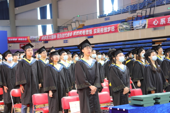 东北大学国旗护卫队成员、材料科学与工程学院材料科学与工程专业丁欣辰同学带领全体2022届本科毕业生宣誓,共同抒发了“今天我以东大为骄傲,明天东大以我为自豪”的豪情壮志。