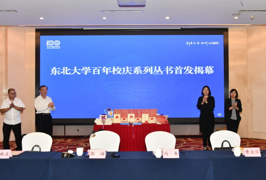 马春、胡承波、曹金萍、郭海共同为校庆系列丛书首发揭幕。据悉,东北大学百年校庆系列丛书共计 10 本,分别为《我的大学》《传承与轨迹——从东北大学走来的院士风采录》《讲述•东大人的故事》《实干 报国 创新 卓越——东北大学文化探析》《东北大学百年纪事》《东北大学复名的前前后后》《一融双高 对标争先——新时代东北大学基层党建工作案例选编》《守正创新 铸魂育人——新时代东北大学思想政治工作案例选编》《漫游东大》《光影东大》。这套丛书文脉清晰、内容丰富、事例翔实、图文并茂,丛书的出版,是对东大百年文化的挖掘凝练,是对东大百年办学实践的梳理总结,具有深远的历史意义和文化价值。