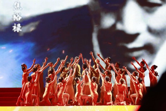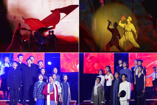 文艺晚会在歌伴舞《祝福祖国》《红旗飘飘》《大中国》《今天是你的生日》中拉开帷幕。梦启东方篇章中,情景表演《红船向未来》生动演绎了中国共产党引领中国革命起航的“红船精神”。在音舞诗话《不朽的丰碑》中,全场观众仿佛回到了山河破碎、战火纷飞的年代。“在愤怒的呐喊中,在燃烧的热血里,我们看到了东大人熟悉的身影,他们在奔走、在呼号、在前行、在抗争;丛德滋、佟彦博、苗可秀……他们的故事祭告中华大地,他们的血肉擎起中华民族的脊梁、他们的精神铸就不朽的丰碑……爱国,永远印刻在东大人的心中。”同学们分别扮演宋黎、刘长春等东大历史人物,再现东大人作为一二·九运动主力和先锋以及点燃西安事变导火索的英姿,刻画出“捐躯赴国难、视死忽如归”的爱国志士形象。