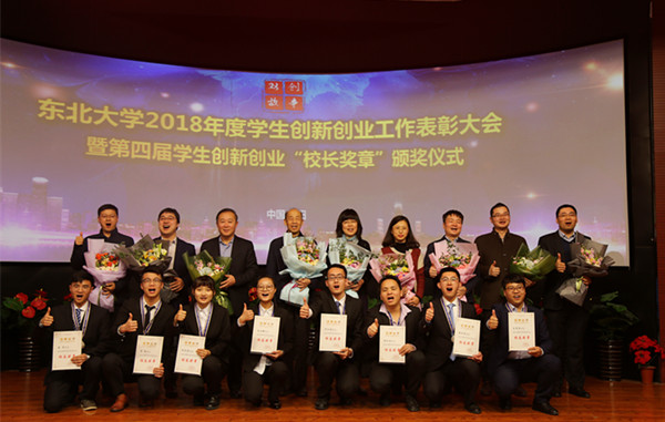 表彰大会上,全体师生共同回顾和总结了过去一年我校创新创业工作取得的优异成绩,与会嘉宾为获奖师生代表颁奖。外国语学院徐翔等119名教师获评“东北大学2018年度学生创新创业活动优秀指导教师”;文法学院陈玉芬等24名教师获评“东北大学2018年度学生创新创业工作先进个人”;理学院苏琦雯等22名学生获评“东北大学2018年度‘大学生创新创业训练计划’优秀学生”;创意设计创新团队等11个学生创新团队获评“东北大学2018年度优秀学生创新团队”;学生科学技术协会等12个学生组织获评“东北大学2018年度校园科技创新活动优秀学生组织”,吴皖容等53名学生获评“东北大学2018年度学生科技创新活动优秀学生干部”,学生科学技术协会科普知识竞赛等13个活动获评“东北大学2018年度科普立项精品活动”;朱春红等7名教师获评“东北大学2018年度创新创业教育名师”。