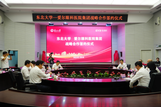 7月5日下午,东北大学与爱尔眼科医院集团战略合作签约仪式在东北大学主楼824室举行。