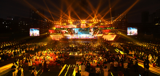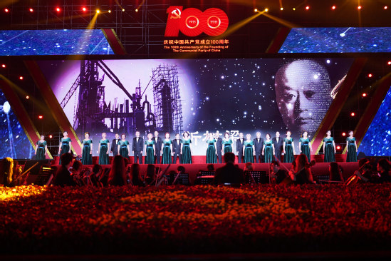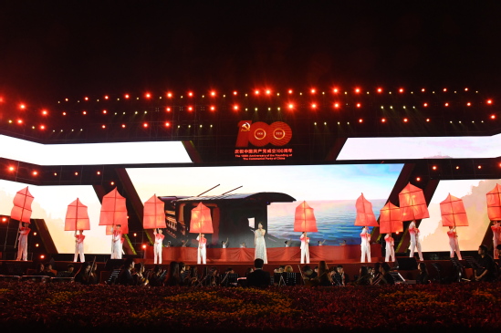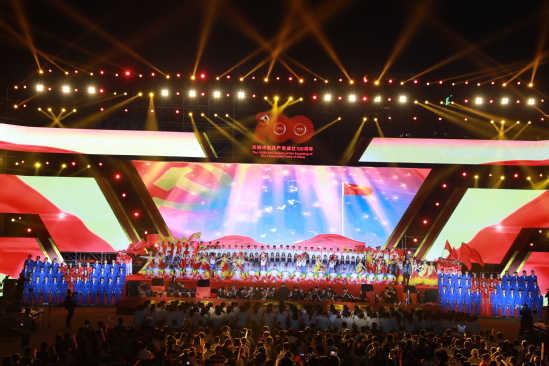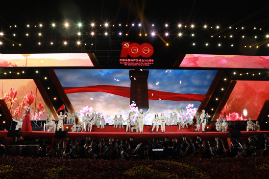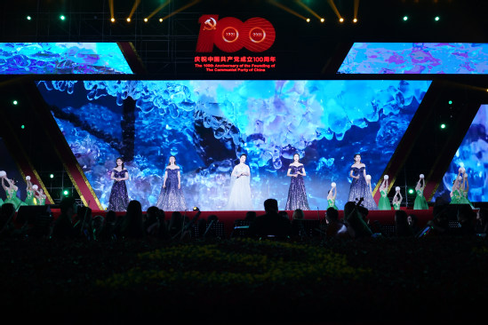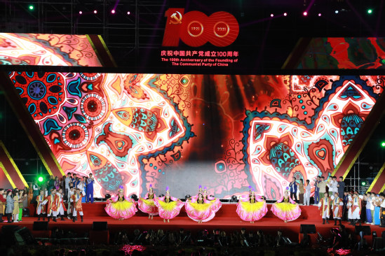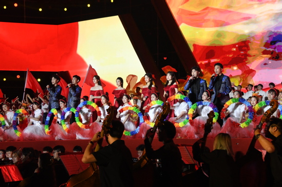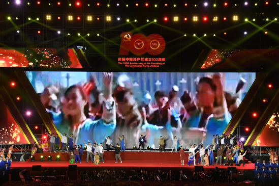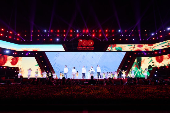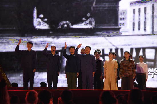 五四体育场内灯光璀璨,流光溢彩,华灯与月辉相映,欢动与赞歌交织。近800名师生演员同台演出,用精心编排的节目,以最真诚的敬意和最激昂的热情献礼中国共产党百年华诞,回顾百年征程、讴歌百年辉煌,为全校师生们呈现了一场隆重热烈、精彩难忘的庆祝晚会。
