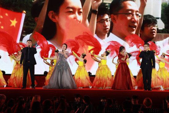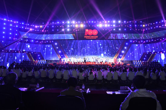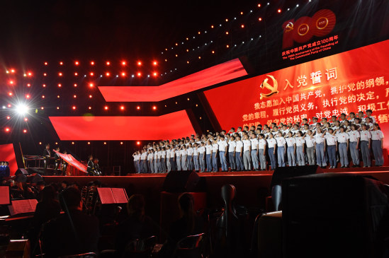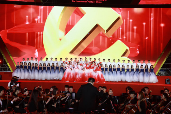 晚会在歌舞《永远跟党走》中拉近尾声,气氛隆重热烈,掌声经久不息,最后在全场齐唱《没有共产党就没有新中国》中落下帷幕。