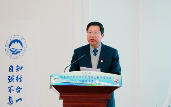孙正林作动员讲话并宣布全体志愿者出征。他向即将出征的冬奥会青年志愿者和一直为闭幕式演出刻苦训练的演员致以亲切的问候。孙正林回顾了东北大学“奥运第一人”刘长春的故事,分享了秦皇岛分校300余名师生在2008年北京奥运会为奥运足球赛秦皇岛赛区提供志愿服务的经历。他表示,此次选拔出的志愿者和闭幕式演员,将再次代表东北大学出征奥运,在服务国际赛场的舞台上书写东大人的青春。