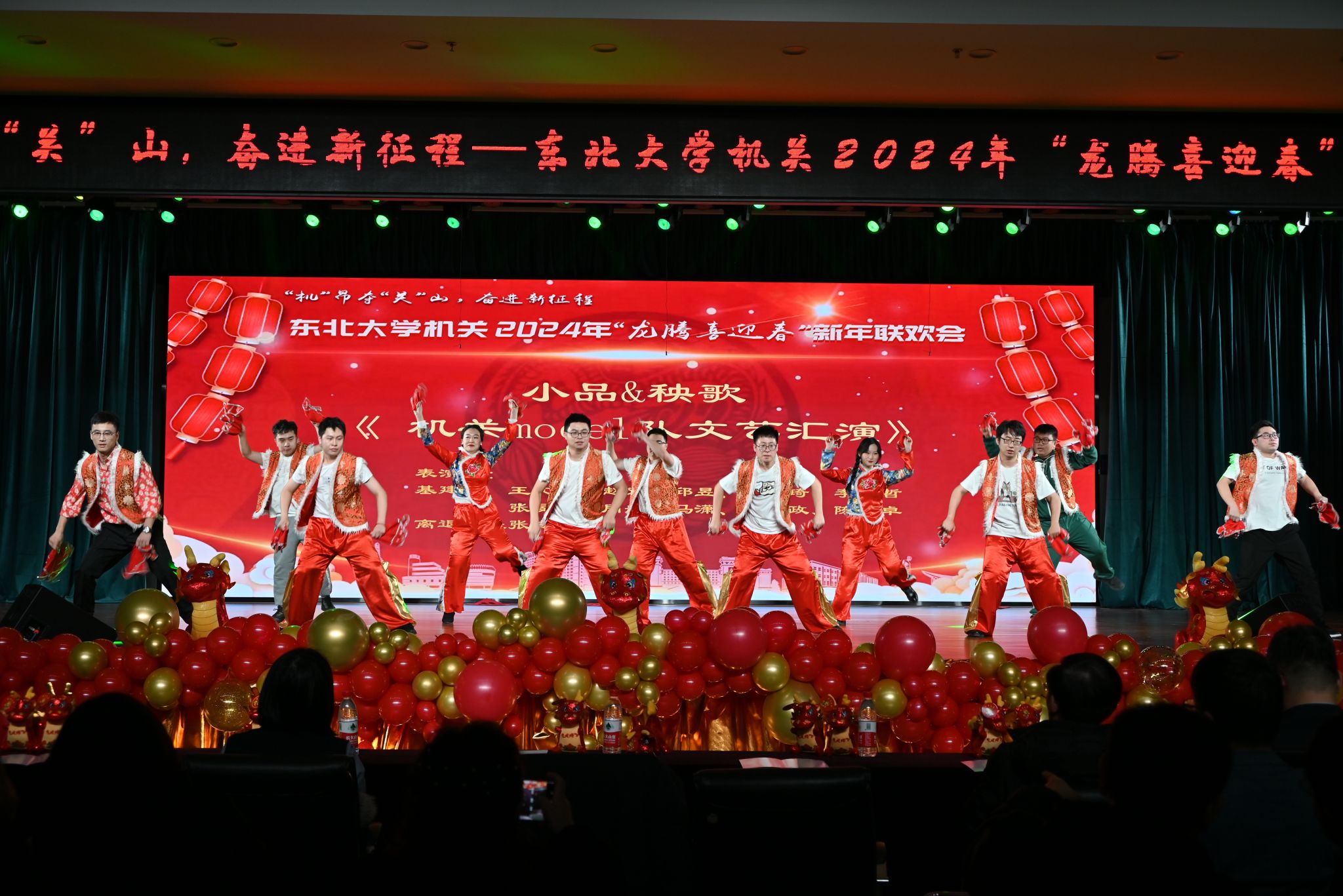 联欢会在舞蹈《美丽中国 最美东大》中拉开帷幕。今年联欢会的各个节目均由多个部门联袂出演,动听的合唱《我的祖国》、激昂的朗诵《东北大学百年赋》、精彩的小品《机关model队文艺汇演》、弘扬时代精神的歌曲《灯火里的中国》、柔美的舞蹈《迷人的魅力》等节目,不断将联欢会推向高潮。联欢会还设置了游戏、抽奖环节,台上台下互动,现场洋溢着欢乐祥和的气氛。联欢会在全场合唱《歌唱祖国》中落下帷幕。