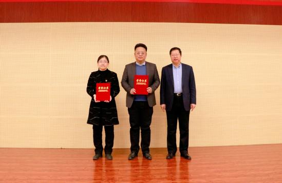 与会领导为获得河北省教学名师和教学团队的教师代表,2021年分校课程思政示范课程/示范课堂、课程思政教学名师和团队代表颁发荣誉证书,2021年分校课程思政示范专业授牌。