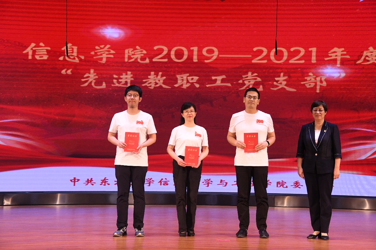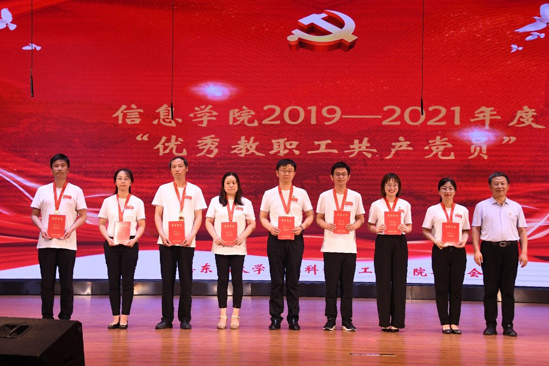 会上对获得信息学院2019—2021年度先进教职工党支部、优秀教职工共产党员,优秀党务工作者、优秀课程思政建设工作个人、优秀班导师、优秀学生党员、优秀学生党支部等集体和个人进行表彰。与会领导为获奖师生颁发证书。