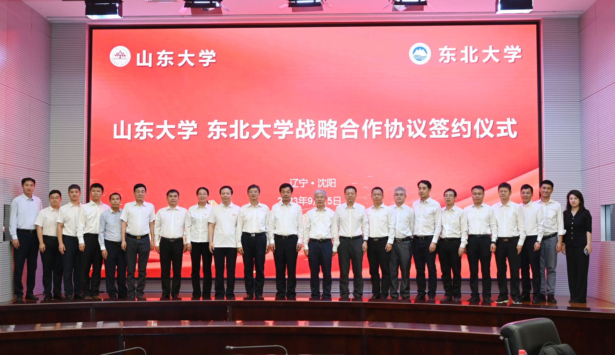 会上,芦延华和徐峰代表双方共同签署山东大学—东北大学战略合作协议。双方将秉承“优势互补、共谋发展、互惠互利、实现双赢”的原则,在学科建设、师资队伍、人才培养、科学研究、资源共享等方面开展更加深入全面的合作,共同推进高质量发展,为服务国家战略、行业产业升级以及区域经济社会发展作出更大贡献。