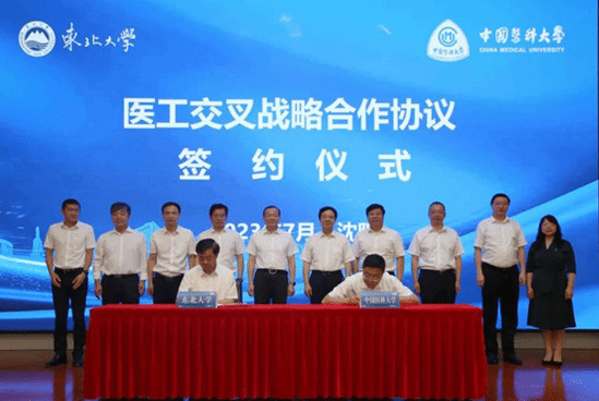 7月12日,东北大学和中国医科大学医工交叉战略合作协议签约仪式在东北大学南湖校区主楼824室举行。中国医科大学党委书记宫福清、校长王振宁、党委副书记闫灵均、副校长曲波,东北大学党委书记郭海,校长冯夏庭,副校长王强、王兴伟出席签约仪式,两校相关部门负责同志参加签约仪式。仪式由王兴伟主持。