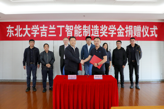 4月26日下午,东北大学吉兰丁智能制造奖学金捐赠仪式在主楼1401室举行。深圳吉兰丁智能科技有限公司总经理王晋生校友,研发总监毕雪峰校友,教育行业负责人谢志坤校友,机床行业高级研发工程师杨迪校友,轴承行业销售经理郑光明校友,东北大学副校长王兴伟,对外联络与合作处、机械工程与自动化学院、软件学院等相关部门负责人出席会议。