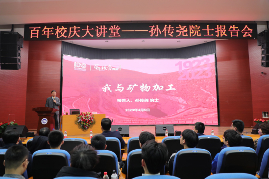 4月5日晚,我校杰出校友、著名选矿工程专家、中国工程院院士孙传尧教授做客百年校庆大讲堂,以“我与矿物加工”为题,在科学馆建龙学术报告厅为师生作专题报告。党委宣传部、对外联络与合作处、资源与土木工程学院相关负责人,部分专任教师以及300余名学生代表参加报告会。