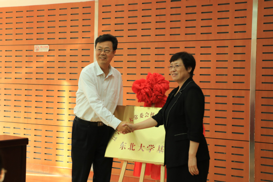 于言良和熊晓梅代表双方为辽宁省人大常委会机关理论与实践智库东北大学基地揭牌。