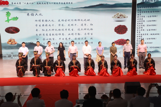 谢师礼分为“青青子衿吟咏我心”“长亭谢别师风润心”“薪火相传家国归心”三个篇章,浑南校区的2021届毕业生通过《饮水思源 逐梦远航》诗朗诵、着汉服、行汉礼等方式,回忆大学时光,展现中华传统文化魅力,向母校和老师表达尊敬爱戴的感激之情。学校向毕业生赠送了东北大学专属纪念折扇,激励广大毕业生在传承中华优秀文化的同时,不忘东大精神、不失东大风骨。“饮水思源 致敬百年”——东北大学谢师礼献礼百年校庆活动方案征集也面向全体师生员工以及海内外校友同步启动。