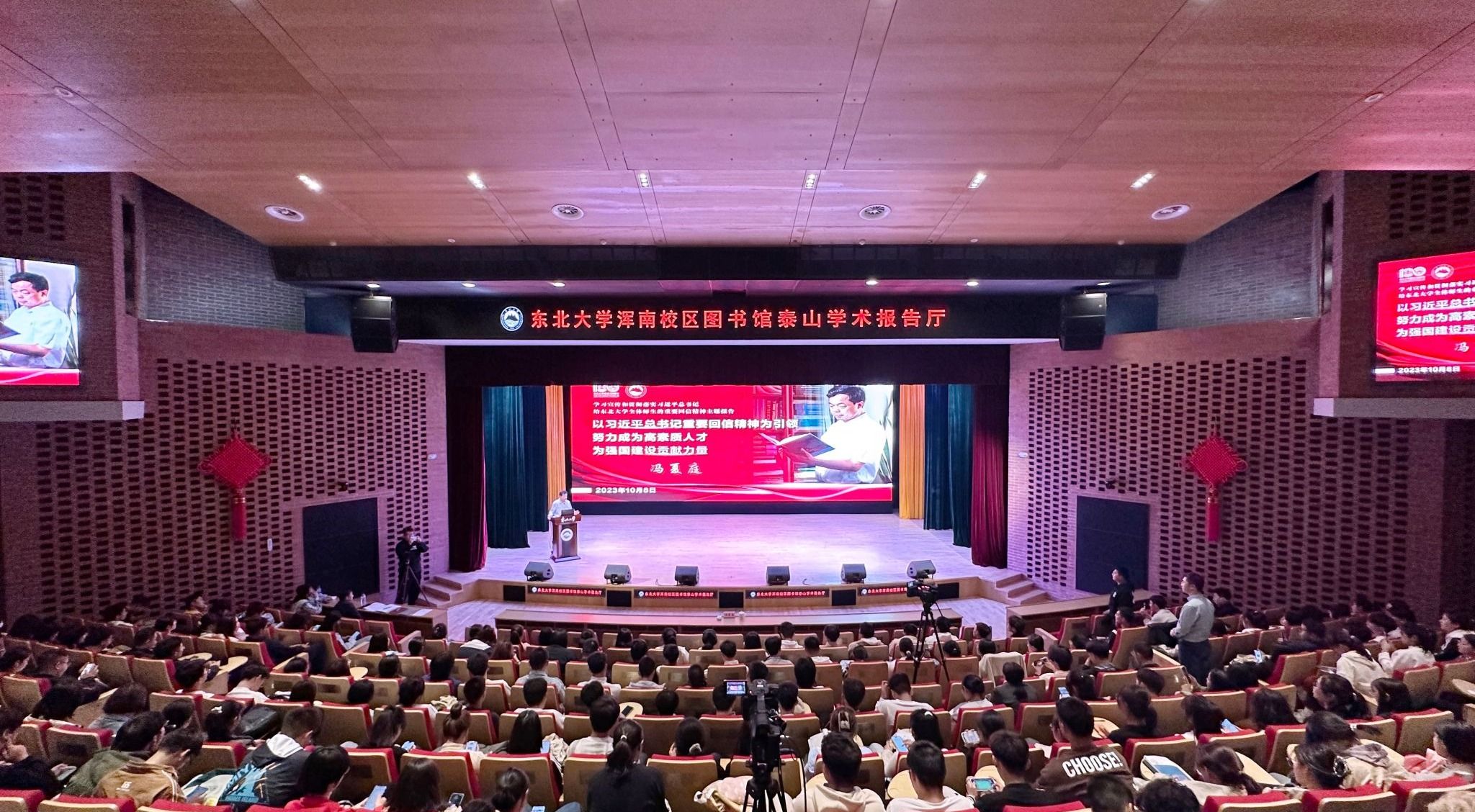 10月8日,中国工程院院士、东北大学校长冯夏庭以“以习近平总书记重要回信精神为引领,努力成为高素质人才,为强国建设贡献力量”为题为2023级本科生讲授“开学第一课”。报告在浑南校区图书馆泰山学术报告厅设主会场,南湖校区汉卿会堂蔡冠深报告厅设分会场。