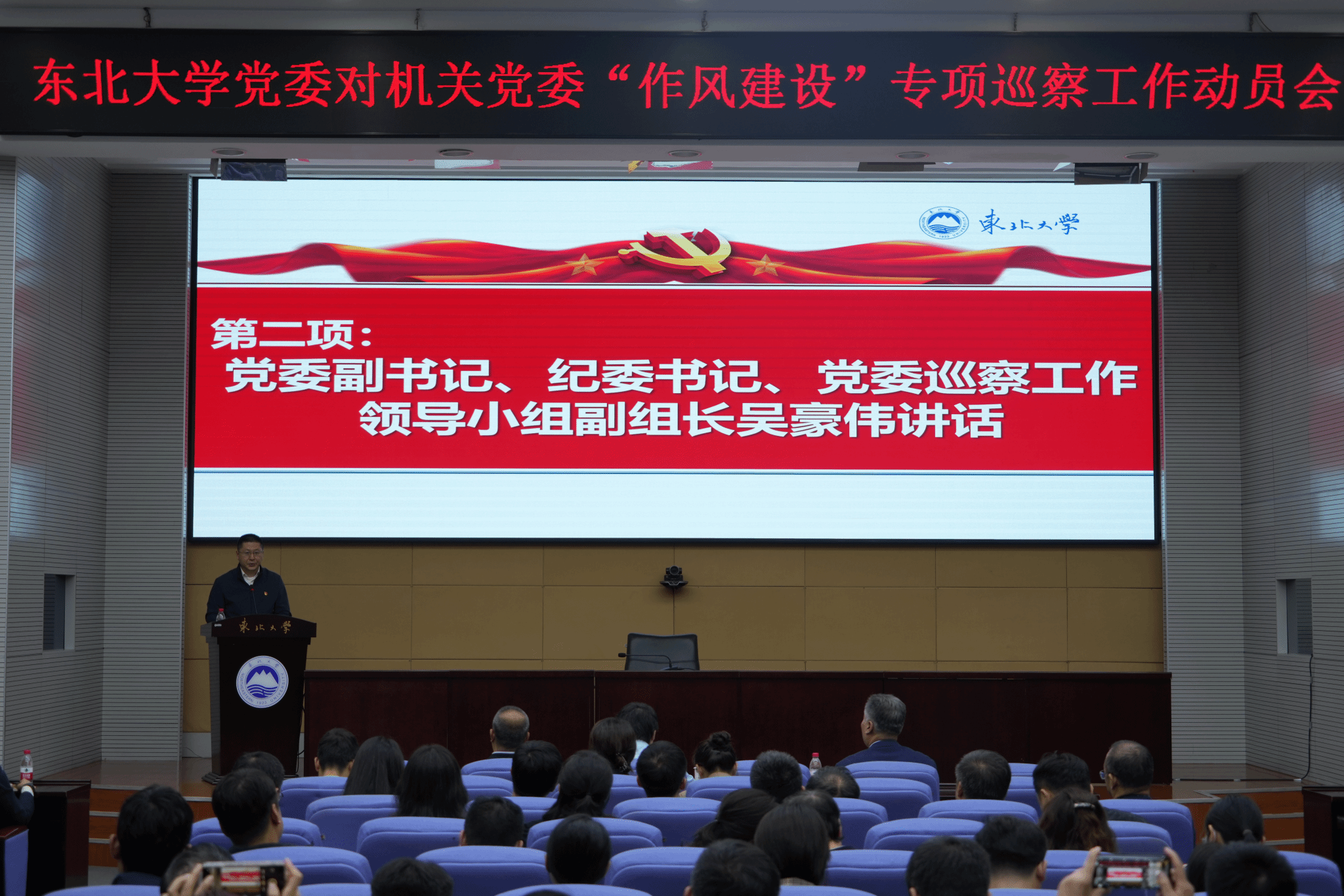 张玉宝代表常规巡察组、杨东坪代表专项巡察组,传达了学校党委巡察工作精神,介绍了常规巡察和专项巡察的重点任务和总体工作安排。张玉宝表示,巡察组将认真贯彻学校党委对巡察工作的部署,坚持政治巡察定位,坚持问题导向和同题共答,突出对“两个维护”的监督,突出对贯彻落实党的二十大精神的监督,突出对落实习近平总书记给东北大学全体师生重要回信精神的监督,紧盯“一把手”和领导班子,紧盯落实学校党委常委会和校长办公会决策部署执行情况,紧盯群众反映强烈的突出问题,紧盯巡视巡察主题教育审计整改和成果运用,重点监督检查“四个落实”方面的情况。杨东坪表示,巡察组将坚决执行中央“发现问题、形成震慑,推动改革、促进发展”巡视工作方针,把“真发现问题,发现真问题”作为巡察工作生命线,重点检查学习领会、把握贯彻上级精神和落实学校文件、决策情况,检查履职尽责、服务师生情况,检查落实巡视整改任务情况,检查落实中央八项规定精神和加强关键风险点防范情况。巡察组对被巡察单位与巡察组加强协调配合、同题共答做好巡察工作提出要求,对巡察组加强纪律建设和作风建设作出承诺。