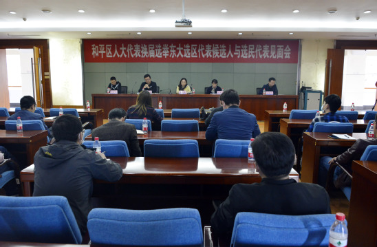 10月11日下午,和平区人大代表换届选举东大选区代表候选人与选民见面会在东北大学汉卿会堂402室举行,南湖地区东北大学选区4名代表候选人和30余名选民代表参加会议。