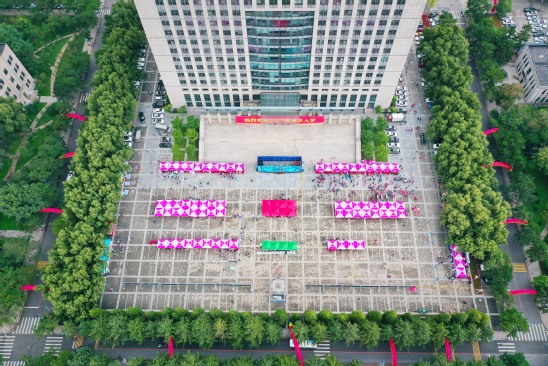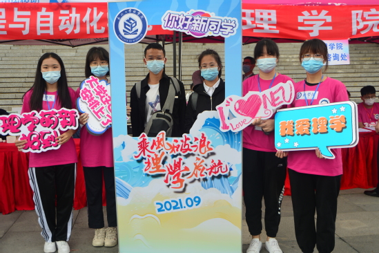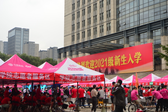 在南湖校区,悬挂“展开理想的翅膀,扬起青春的风帆”等迎新标语的鲜艳拱门,印刻着“自强不息、知行合一”校训的彩旗,沿着学校的主干道一路将新生引导到主楼北广场集中报到处。广场上,“热烈欢迎2021级新生入学”的巨型喷绘格外醒目,迎新现场四处洋溢着欢乐的氛围。各学院的迎新报到场地沿着主楼北侧一字排开,迎新工作人员和志愿者微笑着迎接来自五湖四海的新同学。一张张热情的笑脸,一声声耐心的引导,让新生们真切地感受到家的温暖。