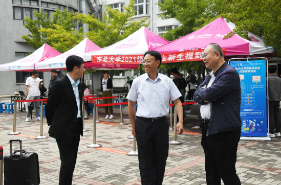 9日上午,校长冯夏庭、党委副书记张国臣在相关部门负责人的陪同下分别来到南湖校区和浑南校区各学院报到点和有关部门手续办理处,看望新生和迎新工作人员,仔细询问各学院招生工作、迎新工作等情况,为受资助新生发放励志成才大礼包,并对辛勤忙碌的工作人员和志愿者们表示慰问。冯夏庭向正在办理入学手续的新生表示祝贺和欢迎, 鼓励他们尽快适应大学生活,努力学习、全面发展,实现自己的人生梦想。冯夏庭一行还走访了浑南校区五舍新生宿舍,详细了解新生住宿情况,与新生进行亲切交流。