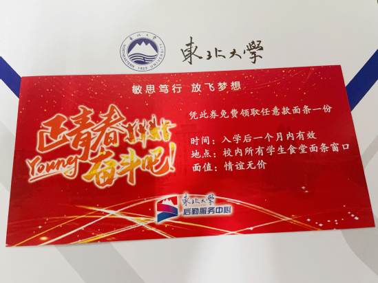 临近中午,东北大学还准备了热气腾腾的“迎新面”。新生凭专属的“迎新面领取券”即可到食堂窗口免费领取。餐券上写着“一碗迎新面一生东大情”,让新生倍感亲切。2021级新生与东北大学的缘分就从这碗别开生面的“迎新面”开始了。