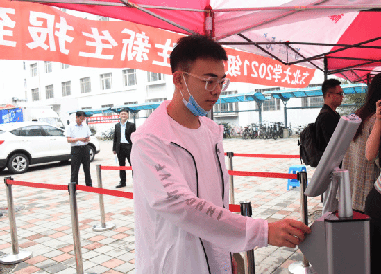 研究生新生报到采用人脸识别自助报到系统,具有设备精良、流程便捷,无纸操作、符合疫情防控、资格审查等五大亮点。研究生新生前往分散在各研究生宿舍的报到点位后,只需将身份证放入识别区,在报到终端一体机前完成面部信息采集,比对成功后即完成报到和新生入学资格的初步审查,每人报到时间不超过15秒。凭借报到成功后收到的短信提示,即可前往宿舍领取校园一卡通办理入住手续,提高了工作效率,实现了无纸化报到,也有效避免了疫情防控期间的人员聚集。