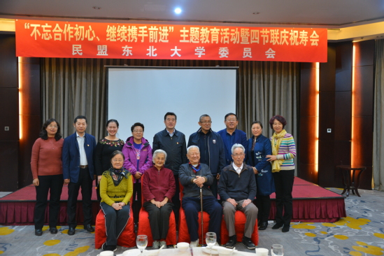 11月15日,东北大学在国际学术交流中心聚贤厅举办“不忘合作初心、继续携手前进“主题教育活动暨四节连庆祝寿会。民盟辽宁省委组织部部长赵承业、民盟沈阳市委组织部部长贾丽薇,校党委副书记、纪委书记杨明,统战部、校长办公室相关负责人,民盟东北大学委员会成员参加祝寿会。
