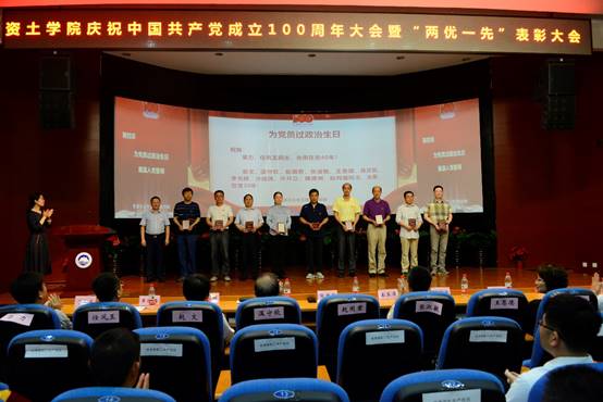 大会在雄壮的国歌声中拉开帷幕。会议表彰了2019—2021年度资土学院先进党支部、优秀共产党员、优秀党务工作者。