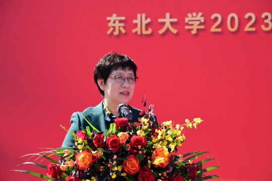 校党委书记熊晓梅代表学校向各届校友荣归母校表示热烈的欢迎,向全校师生、海内外校友致以节日的问候和美好的祝福。熊晓梅表示,校友是母校最靓丽的名片、最宝贵的财富,是母校引以为荣的骄傲,是母校建设发展最可信赖的重要依靠力量。建校100年来,东北大学培养了40万名校友,遍布世界各地,在各个行业领域建功立业,作出了杰出的贡献。希望广大校友一如既往地支持母校发展,为母校建设出谋划策、添砖加瓦,助力母校在新百年新征程上取得更大成就、作出更大贡献。