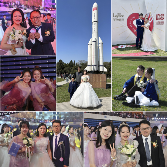 本次集体婚礼的校友新人的居住地点遍及全国19个省级行政区,最远的5对新人来自广东省深圳市。本次校友集体婚礼还通过快手、微博、抖音全程直播,80余万人次在线观看直播,共同见证了这一浪漫时刻。