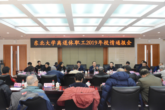 1月2日,东北大学离退休职工2019年校情通报会在汉卿会堂308室举行。校长赵继向离退休教职工代表通报了2019年学校发展情况。校党委副书记张国臣及相关部门负责人参加会议。