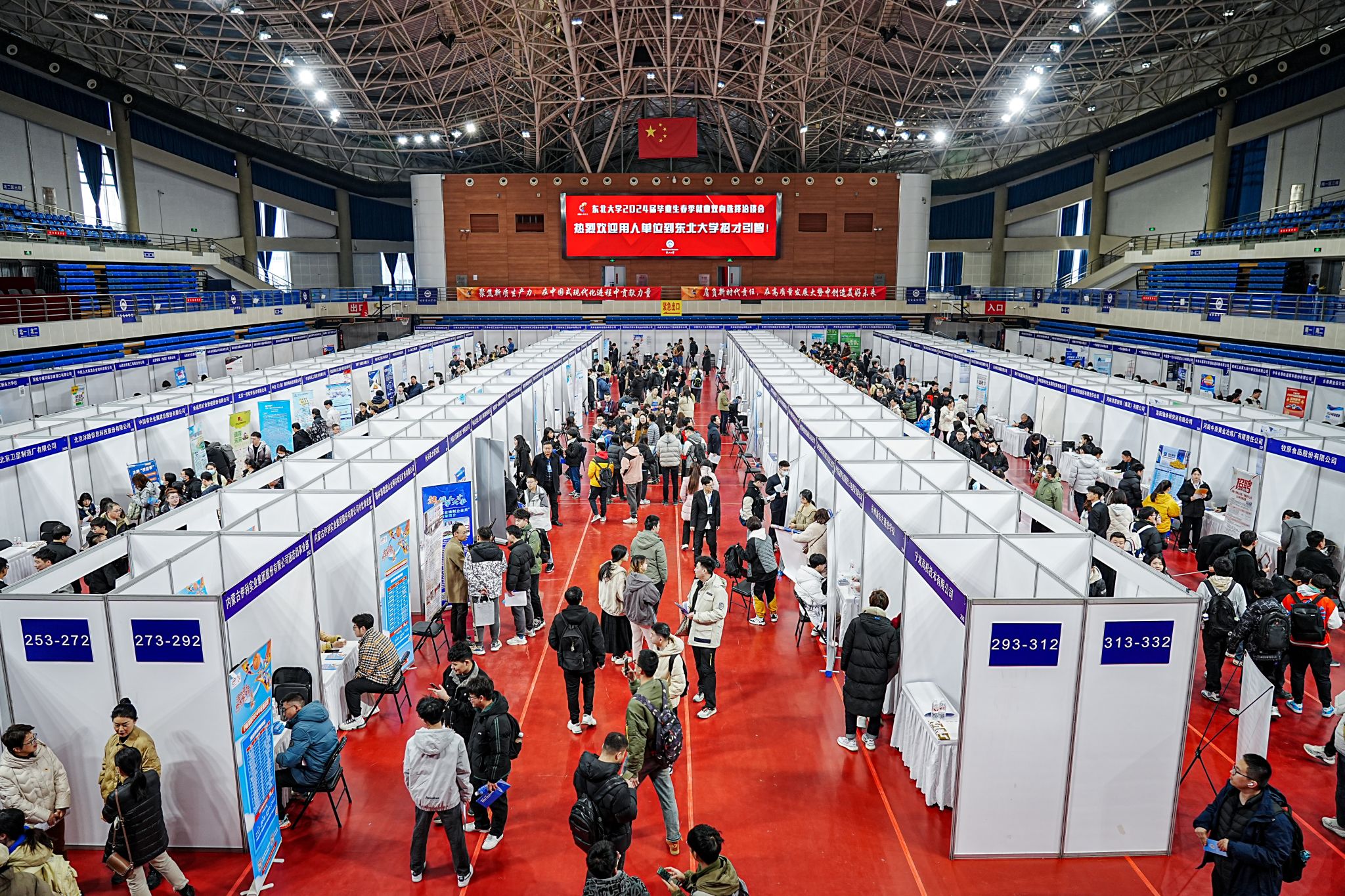 一是聚焦国家战略,服务辽沈发展。加强对国家发展战略重点领域的就业市场开拓,围绕新质生产力相关的高端装备制造、智能矿业、新能源新材料、生物医药、新一代信息技术产业等战略性新兴产业,拓展“校、院、专业”三级就业市场建设规划,主动与地区政府、行业协会、东北五校就业协作体等合作,结合学科专业特点举办行业内专场招聘会,引导毕业生投身科技报国。本次“双选会”单独设立“辽沈专场”,118家辽沈地区的用人单位参会,设立“双选会”地区人才政策咨询专区等,构建辽宁地市区立体化人才政策“宣传矩阵”,鼓励毕业生留辽建功立业。截至目前,针对2024届毕业生共举办线下专场招聘会1019场、组团招聘会73场、空中宣讲会113场;发布网络招聘信息3323条;“东大职业发展”微信公众号推送推文1332条。共有包含中国工程物理研究院、宝武集团、航天科技、航天科工、一汽集团、中国建筑、中航工业、中核集团、中国黄金、中国中车、鞍钢集团、移动、联通、华为、浪潮、中兴、美的、京东方、吉利、比亚迪、腾讯、百度、海信等央企、世界500强、中国500强和行业重点企业在内的4000余家用人单位在我校开展线上或线下招聘活动。