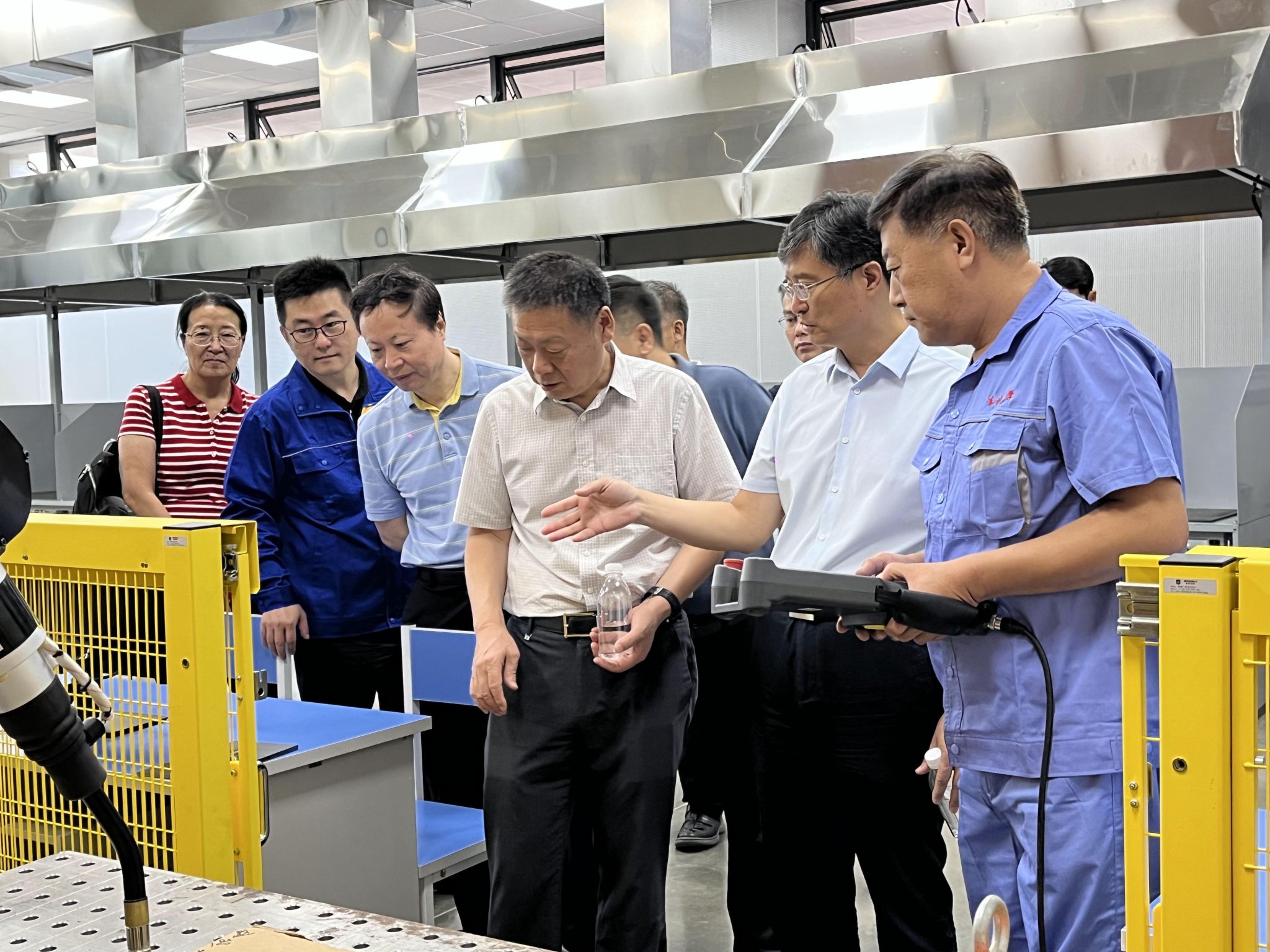 芦延华一行走进特种加工教学区、车床教学区、加工中心教学区、机器人教学区等实训场地,认真了解了中心的整体建设和实践教学等情况。