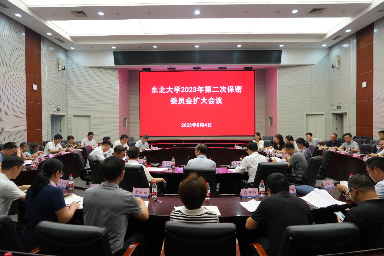 8月4日,东北大学2023年第二次保密委员会扩大会议在主楼824室召开。会议全面启动了学校保密资格认定审查工作,对学校保密认定工作进行了部署和动员。校保密委员会主任、党委书记郭海,校保密委员会主任、校长冯夏庭出席会议,校保密委员会副主任、副校长唐立新主持会议。学校保密委员会成员和涉密部门负责人参加会议。