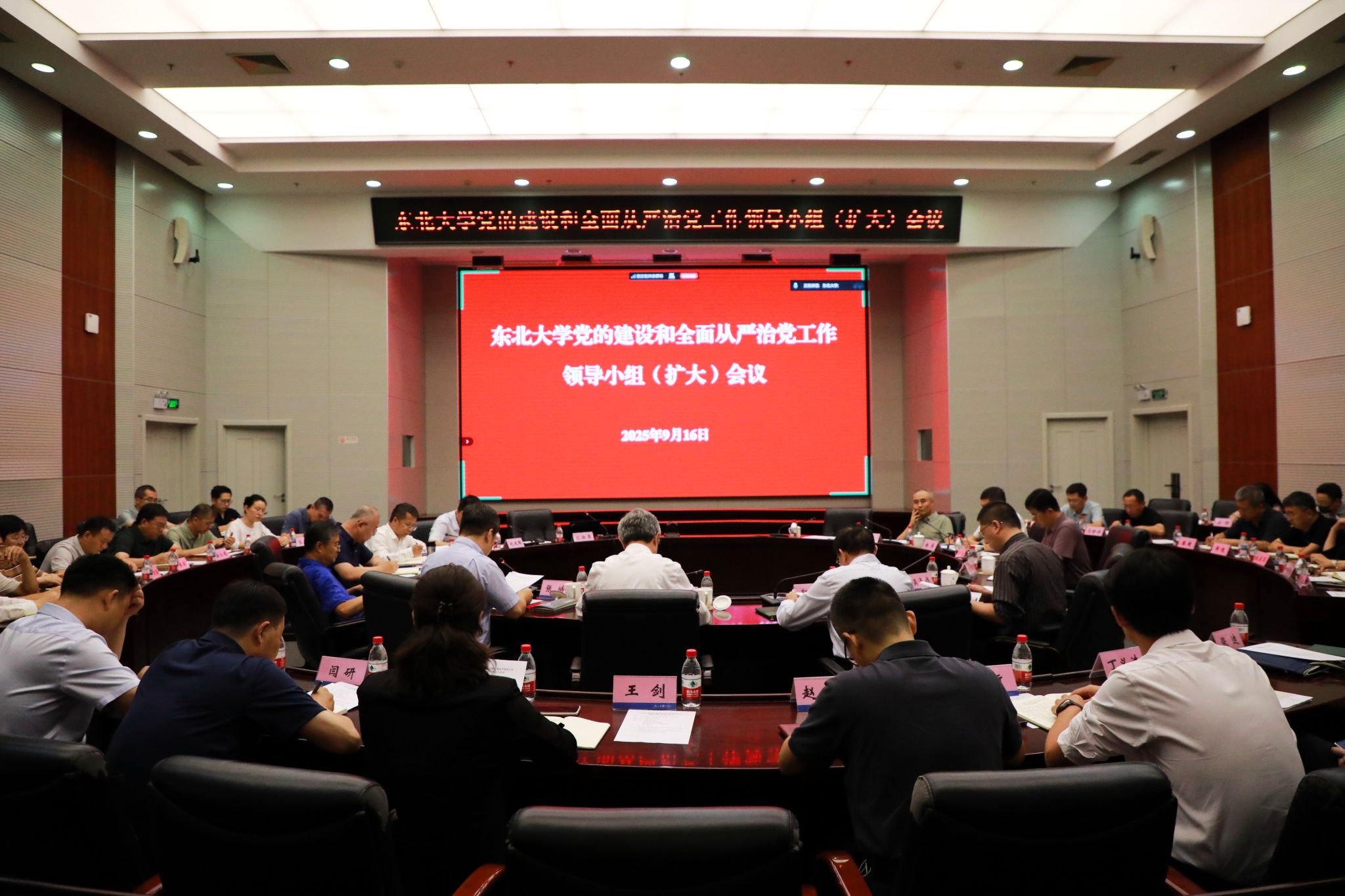 9月16日,东北大学党的建设和全面从严治党工作领导小组(扩大)会议在主楼824室召开,传达学习9月10日教育部党组会暨党的建设和全面从严治党工作领导小组会精神,全面总结学校深入贯彻中央八项规定精神学习教育的做法和成效,研究部署巩固拓展学习教育成果、推进作风建设常态化长效化工作。学校党的建设和全面从严治党工作领导小组成员、领导班子成员、党委常委、校长助理、学习教育工作专班主要负责人、分党委书记等参加会议。会议由校党委副书记张皓主持。