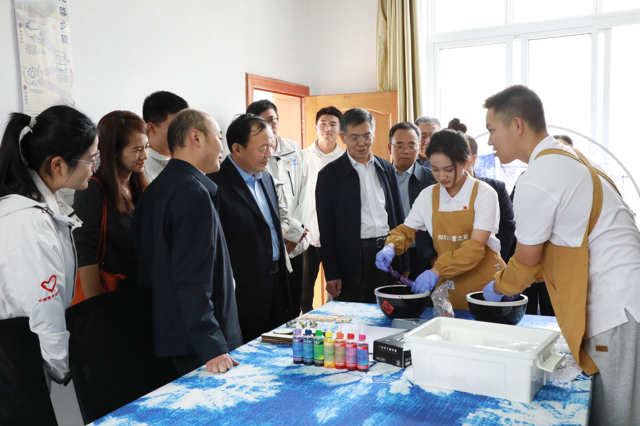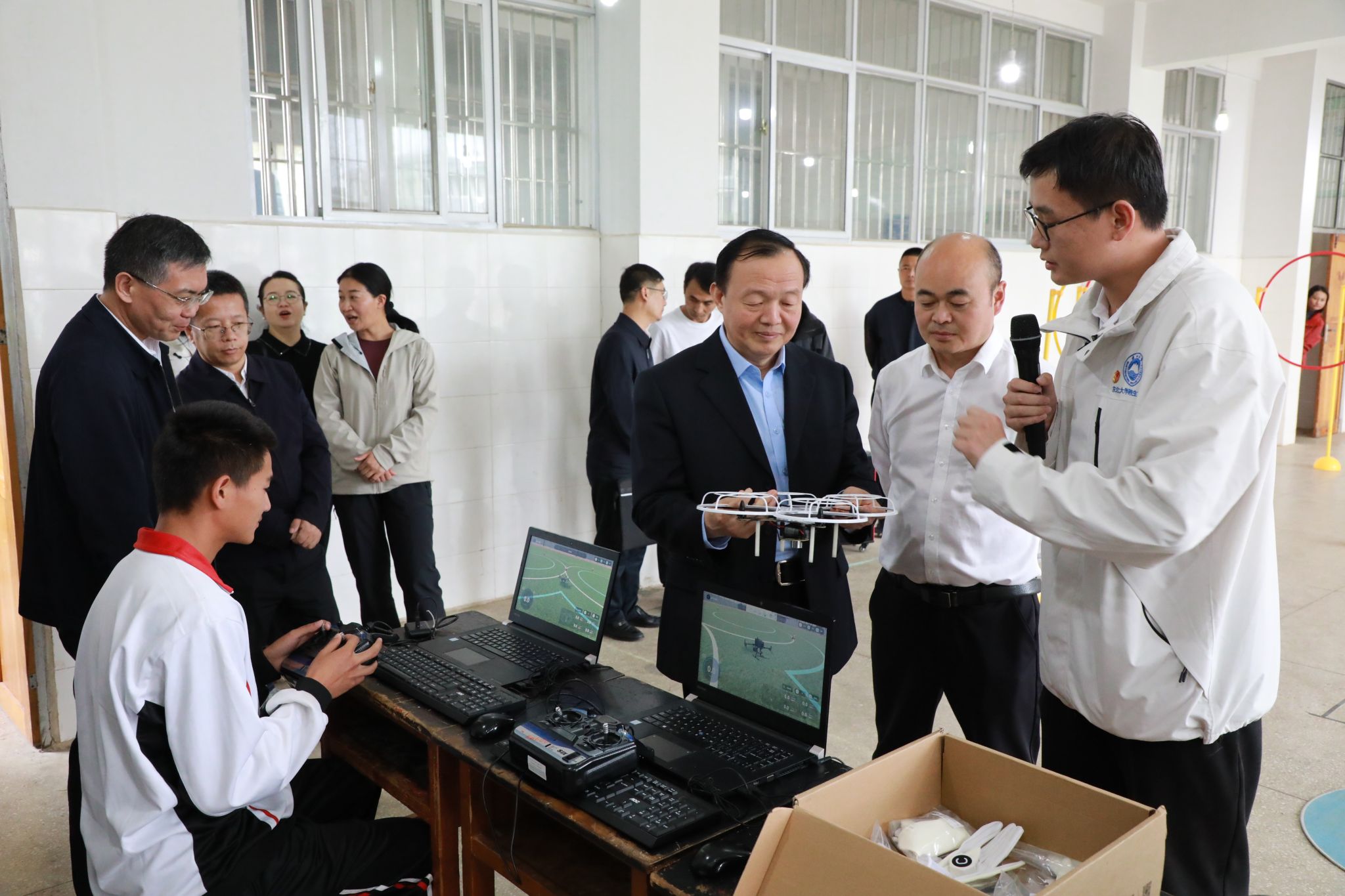 6日下午,郭海一行前往田园镇新华村“知行”儿童之家、昌宁县职业技术学校,参观东北大学援建的非遗蜡染工作室、航天模型实验室、无人机实验室、新能源汽车故障检测与诊断VR教学实训工位等,看望慰问驻村帮扶人员与研究生支教团成员,通过座谈交流详细询问了解大家的工作进展、学习收获与生活保障情况。东北大学派驻昌宁县挂职干部王颖、王君分别汇报了挂职期间的工作与心得,研究生支教团成员汇报了支教期间的工作与成长感悟。