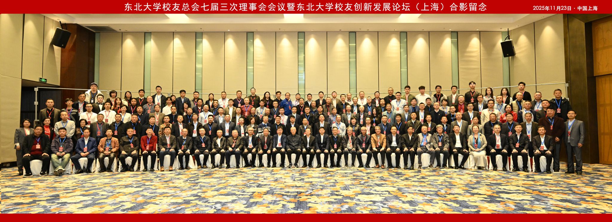 11月23日,东北大学校友总会七届三次理事会会议暨东北大学校友创新发展论坛在上海举行。东北大学党委书记、校友总会会长郭海,党委副书记、校友总会副会长张皓,原党委常委、副校长、秦皇岛分校原校长刘建昌,校长助理、秦皇岛分校校长赵勇,校长助理刘延晖,中国工程院院士、金属导体专家、东北大学校董会常务董事、上海校友会名誉会长黄崇祺,辽宁省政府驻上海办事处主任程云雨,上海华谊集团股份有限公司原监事会主席张仁良,全国人大代表,太钢集团原董事长、党委书记盛更红,宝冶检修、机装、工安公司原党委书记、总经理唐继尧,宝钢集团原副总经理、湛江钢铁工程指挥部原总指挥、湛江钢铁原董事长、上海校友会会长赵周礼,上海交通大学原党委常委、统战部部长、上海市太平洋区域经济研究会原理事长、上海校友会监事长张卫刚,绿谷集团有限公司董事长、东北大学校董会副主席、上海校友会执行会长吕松涛,德尔股份董事长、总经理、上海校友会执行会长李毅,容亿投资董事长、上海校友会执行会长黄金平,耀途资本董事长、上海校友会执行会长白宗义,维信国际投资集团董事局主席、东北大学校董会董事郭鳯山,德思勤集团董事长龙固新,东北大学上海校友会秘书长廖生行等嘉宾,全球各地校友会的会长、秘书长、校友代表,东北大学各学院党委书记、院长,东北大学校友总会办公室相关负责人等共计450余人出席会议。张皓主持会议。