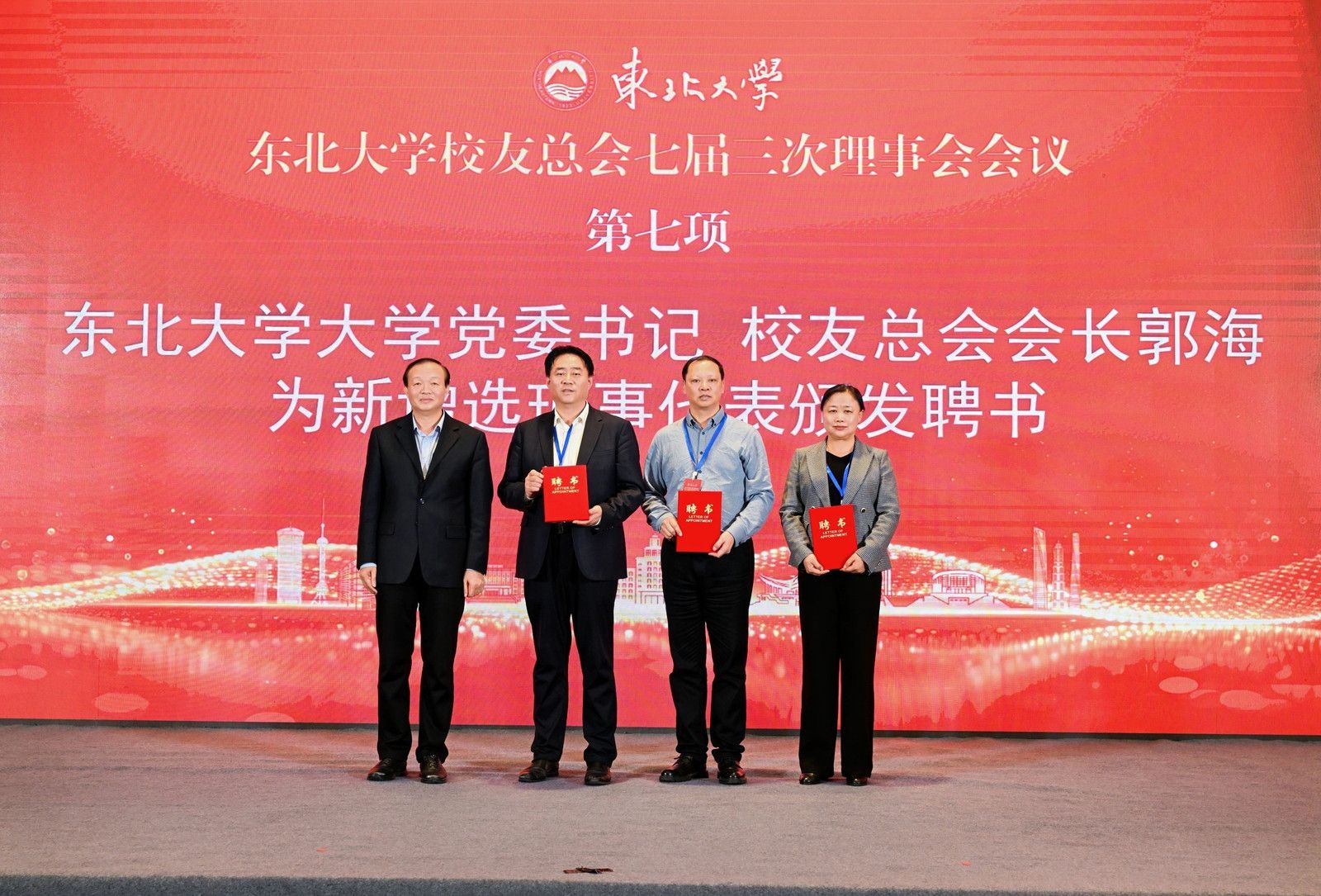 会议首先举行东北大学校友总会七届三次理事会会议。张皓带领全体参会校友,共同重温了习近平总书记给东北大学全体师生的回信;大会审议通过了《东北大学校友总会2025年工作报告》;审议表决了《关于调整东北大学校友总会理事会部分成员的议案》,郭海为校友总会新增选理事代表颁发了聘书;审议表决通过了《关于成立东北大学校友企业家联合会的议案》。