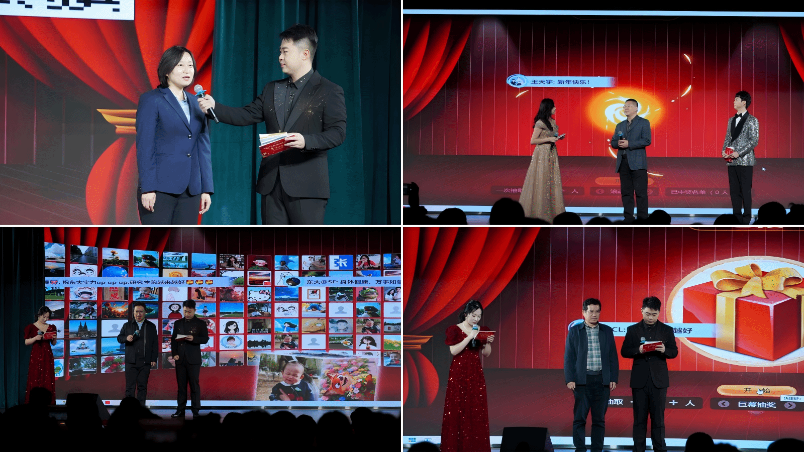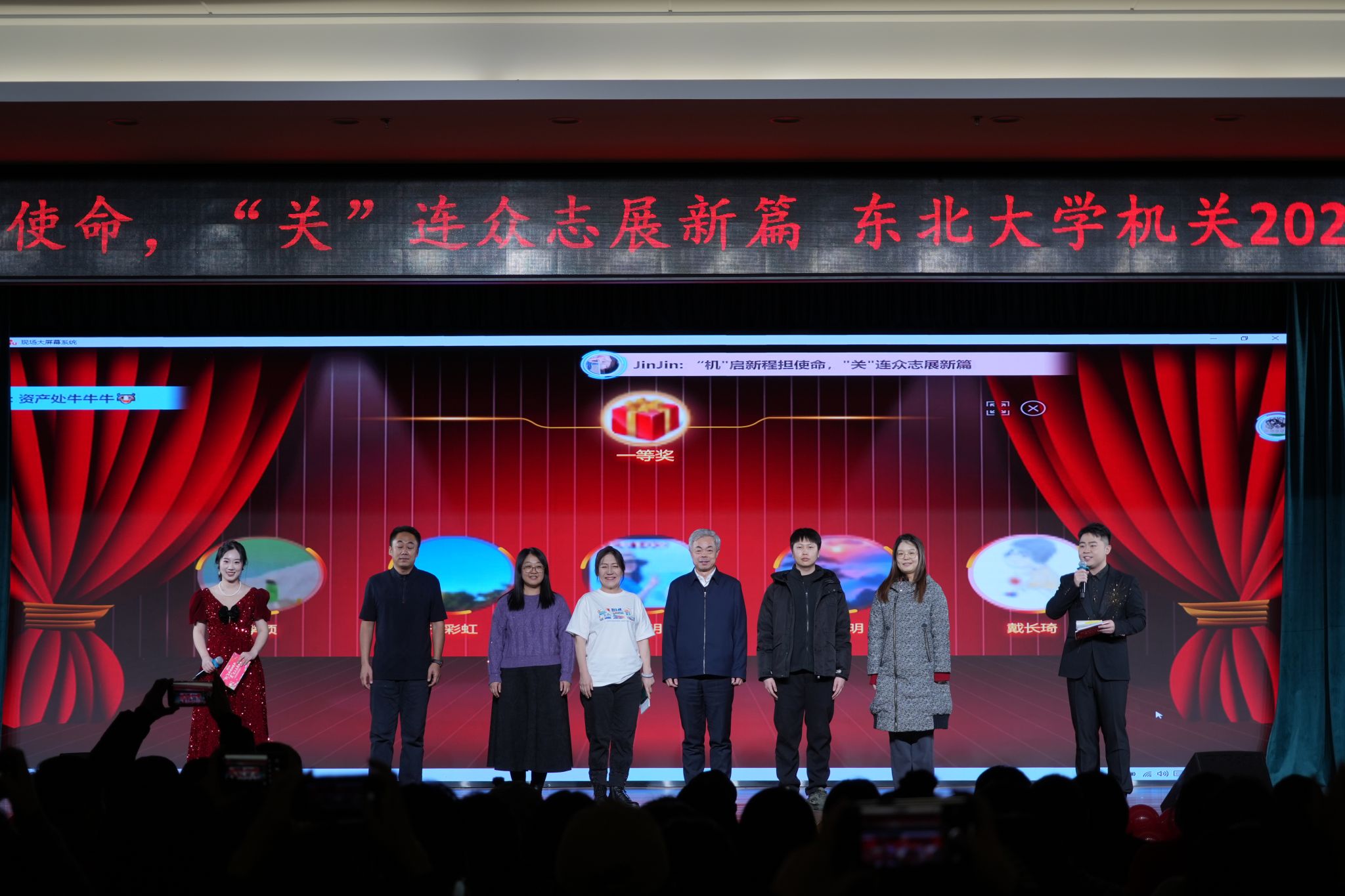 联欢会在舞蹈《骏启新程 资耀华章》的激昂节拍中正式启幕。整场演出由机关多个部门携手共创,节目形式多样、内容精彩纷呈。歌曲《写东大的人:一穗沉土一岁沉浮》深情动人,舞蹈《山河策马·云舞万疆》《踏雪归集》气势恢宏,舞台剧《教务阵线联盟之耕耘开出花》以歌曲串烧形式展现才艺风采,合唱《好风起》洋溢着青春朝气,小品《见家长》妙趣横生,舞蹈《小城谣》风格独具,留学生演绎的《沈水之阳》温情悠扬,舞蹈《我的祖国》更是以深情的舞姿将现场氛围推向高潮。此外,联欢会还穿插了“电子文件夹”趣味互动与抽奖环节,现场掌声、笑声不断,溢着欢乐祥和的气氛。